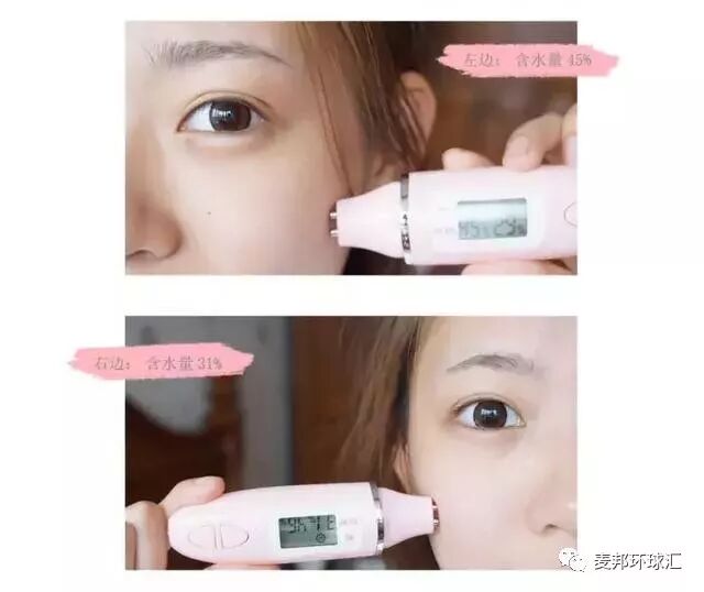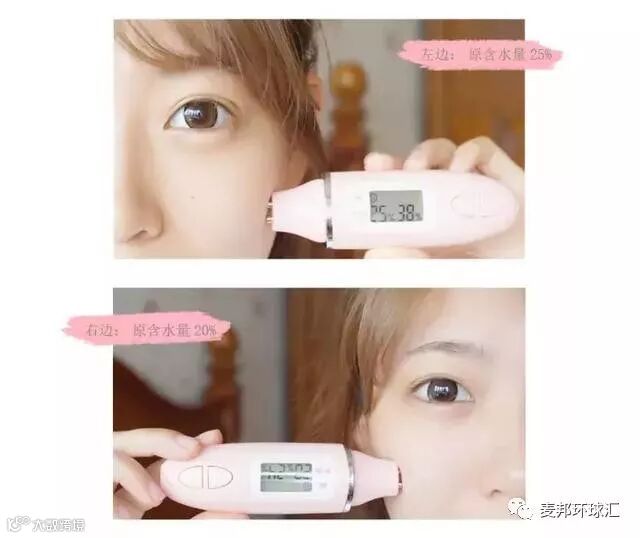 先测量了素颜未上任何护肤品皮肤的含水量。