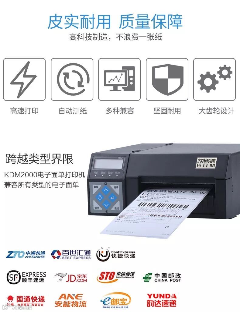 KDM2000可打印不同规格的热敏标签纸,适用于多个场景,可说是“一机搞定”,KDM2000与各大物流企业、电商平台维系稳定,并兼容各类ERP打单软件,适配性好。