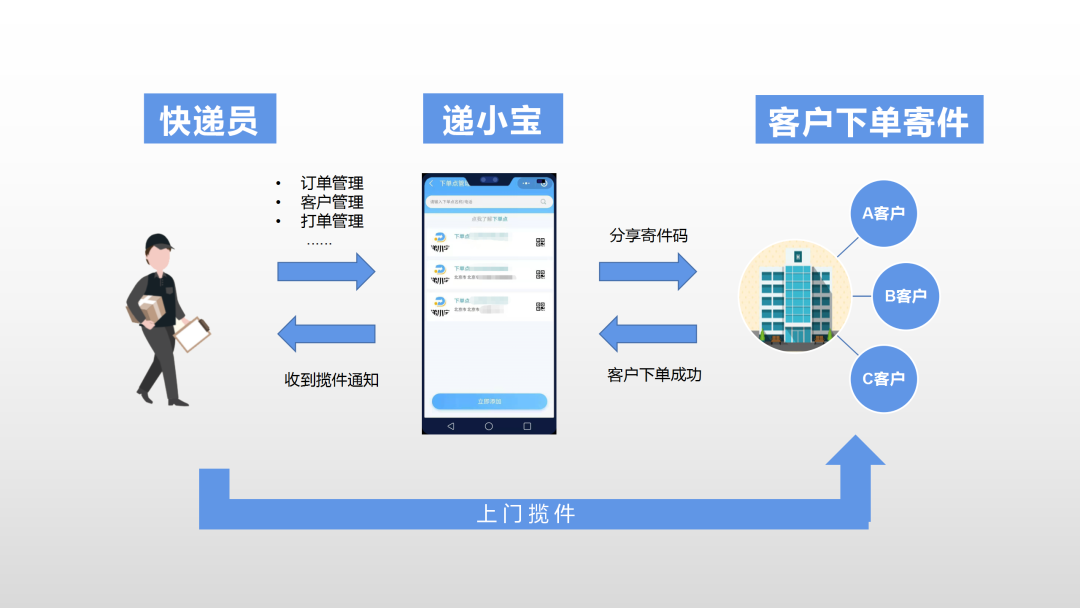 原来快递员收件,需要快递公司系统分配,接单后再上门揽收,十分被动。而且,严厉的时效考核与越来越高的客户服务要求压制着快递员,信息与时效不匹配成为最大痛点。
