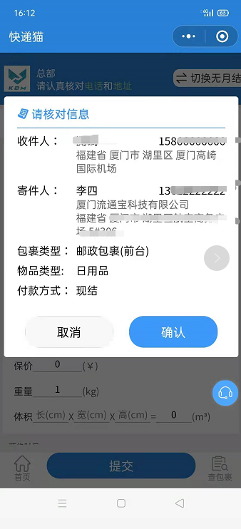 小程序寄件助手下单