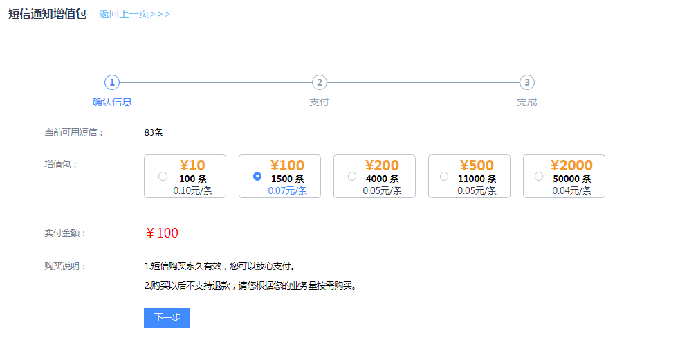 Step 1:充值短信