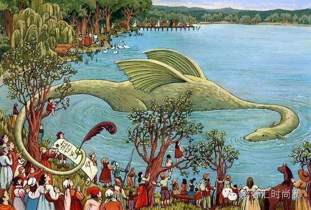 在Bañolas居民的传说中,Banyoles湖里跟尼斯湖一样,有条恶龙。受查尔曼大帝之托,法国修道士San Emeterio镇压恶龙,如今恶龙仍然生活在湖里。图为恶龙与人类签订和平条约。