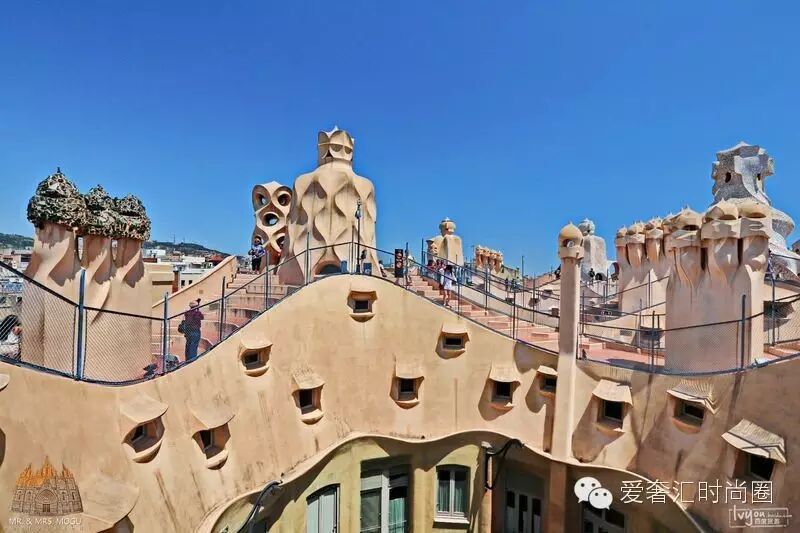 高迪设计的最后一个私人住宅,屋顶高低错落,墙面凹凸不平,到处可见蜿蜒起伏的曲线,整座大楼宛如波涛汹涌的海面,富于动感。33个阳台让每一个房间都能双面采光。阳台围栏用的是生锻的钢铁,像海藻一样妖娆多变。