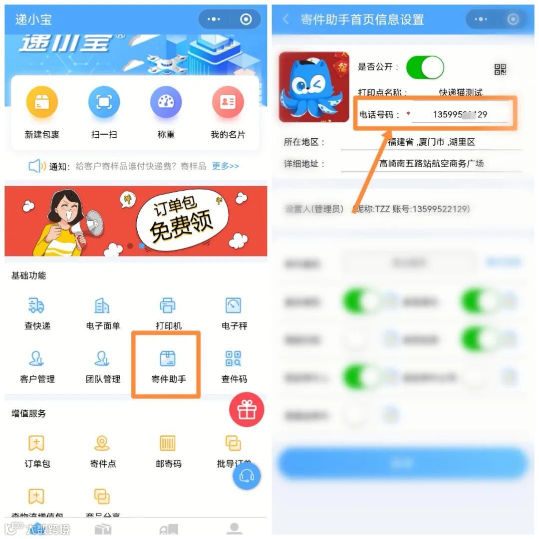 快递员可在递小宝pc端分享寄件中,或者手机端寄件助手中,填写自己的手机号码,将自己的联系方式关联上寄件二维码。