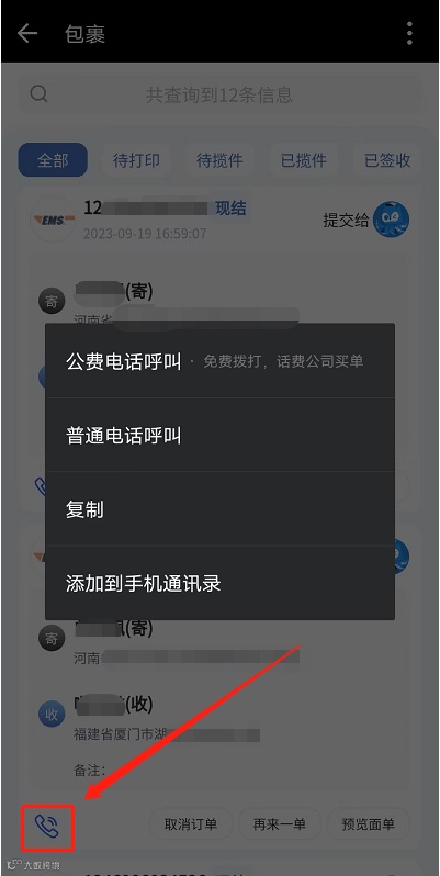 寄件人通过快递员的二维码下单寄件,需要联系快递员的情况下,可以直接在递小宝的订单列表中,一键拨打快递员号码。