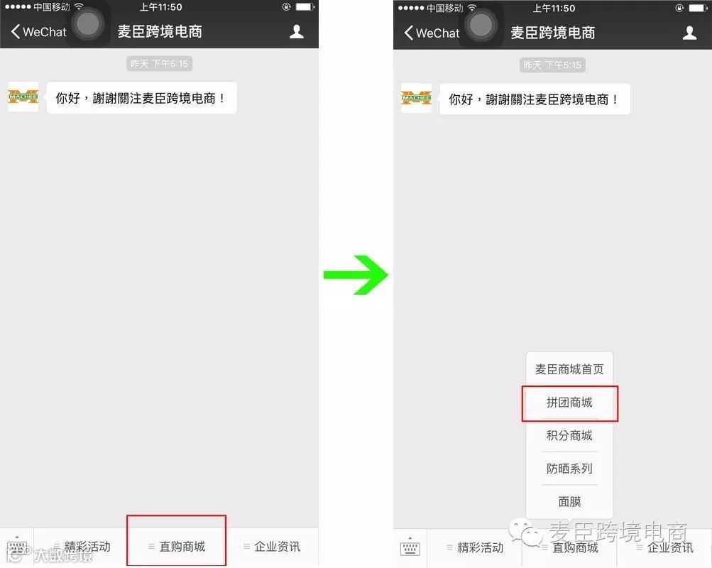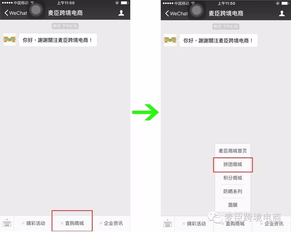 进入麦臣公众平台,点击“拼团商城”即可浏览到我们的拼团商品