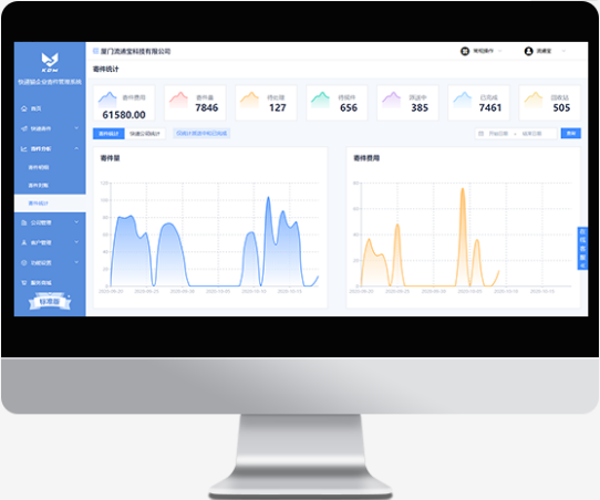 web端实时存储寄件数据,系统多维度图表分析寄件情况。