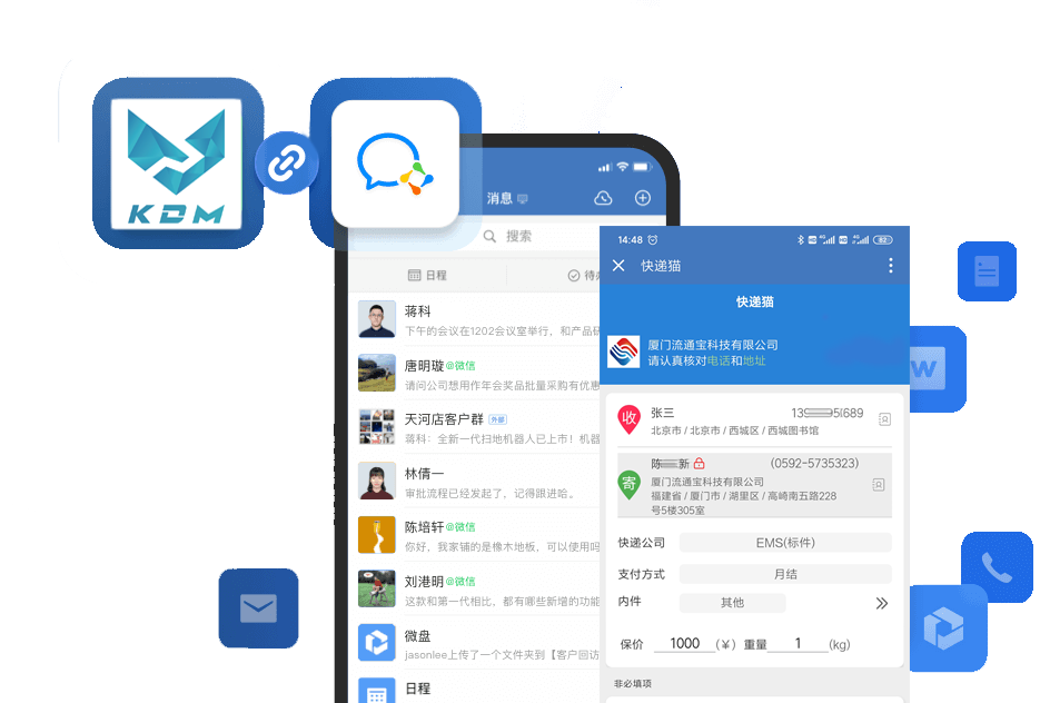 使用企业微信的企业客户,只需注册企业微信并添加第三方企微服务商【快递猫企业版寄件助手】;然后同步在快递猫寄件管理系统注册企业账号,即可同步数据。