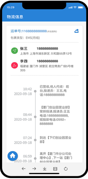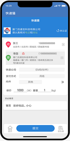 基于企业微信平台,员工在统一入口寄件下单,连接智能云打印机实时出单;