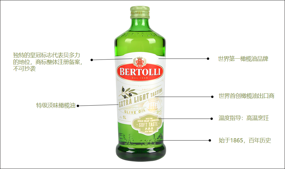 贝多力始于1865年,产于意大利,是意大利非常受消费者喜爱的橄榄油品牌,也是世界公认的橄榄油品牌。