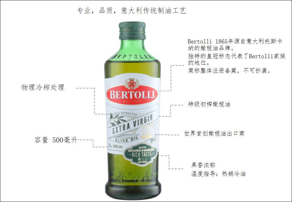 【品名】:贝多力特级初榨橄榄油 1L/500ml