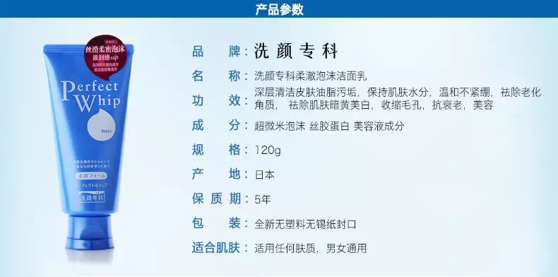 我们的肌肤每天都在面临考验,早晚洁面就显得尤为重要了。资生堂洗颜专科洁面乳,适合各种类型的肌肤。细腻清新的泡沫,能深入清洁毛孔、去除油腻、残妆等面部污垢!