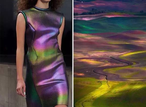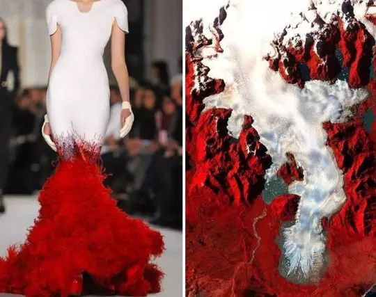俄罗斯博主Liliya Hudyakova,一个灵感泉涌执行力超强的姑娘,她竟然把好多时装的灵感来源都扒出来了。我不知道她是用什么手段将这些衣服都找到对应的风景照片做原型,这一定是相当大的工作量,而且两者往往是那么的匹配合拍,就好像设计师从这些风景照片里抄的一样。
