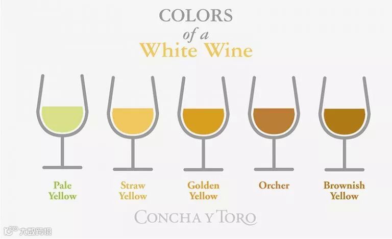 而白葡萄酒的色泽反而越来越深,颜色会从浅绿或者黄色慢慢向棕色发展,同时演化出一些蜂蜜、蜂蜡、太妃糖或坚果的味道。