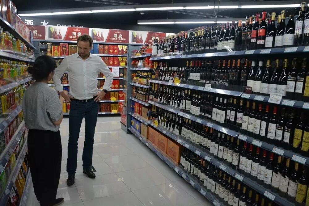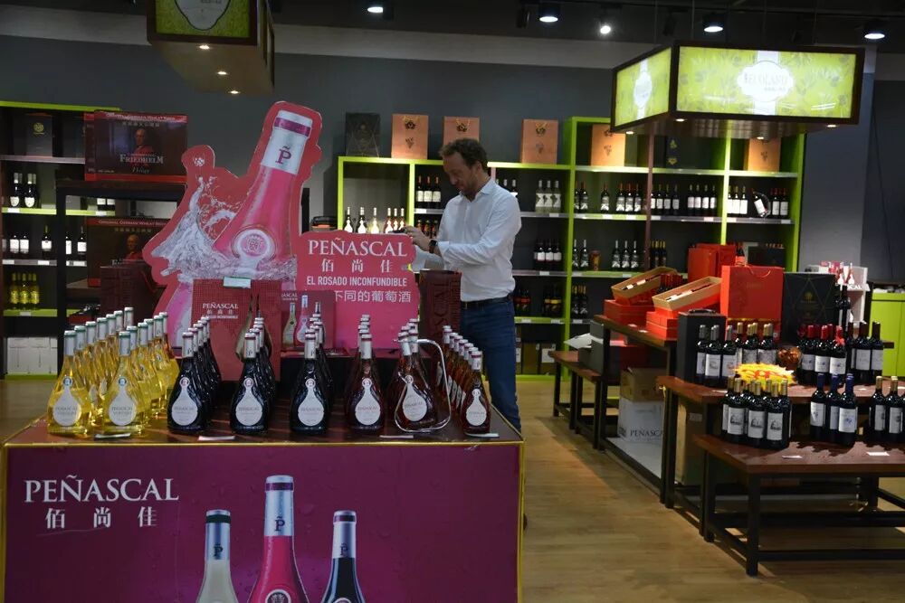品鉴会结束后,Stéphane Desmarquest总经理在中企华业相关同事的陪同下,来到各实体门店查看集团各系列酒的陈列和销售情况。