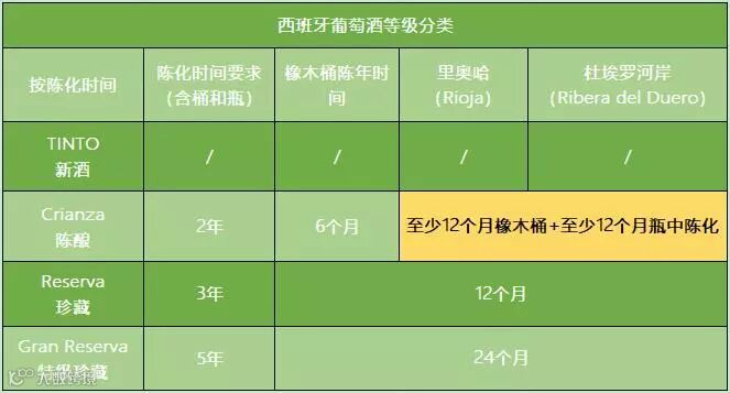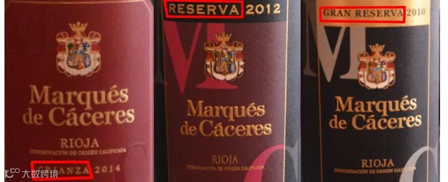 其实,这代表着西班牙葡萄酒的一种分级制度。与其他国家不同的是,西班牙葡萄酒有两套分级制度,一个是以产区为基础的DOP分级制度,和欧盟接轨;还有一个是独特的陈化时间分级制度。而刚才看到的几个字母,就代表着按照陈酿时间对西班牙葡萄酒进行的等级分类。
