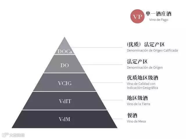 按西班牙DOP法定产区分级制度,分别包含以下级别(从高到低):DOCa、DO、VCIG、VdIT、VdM。