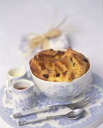 英式食物中最传统的莫过于面包和黄油,这些常见的食材做成甜点却是另外一番美味。分层的黄油面包撒上鲜美的葡萄干,配上香草,入烤箱时加入一点奶油蛋羹,完成后的甜点散发着来自黄油和牛奶的香味。