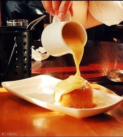 Treacle Sponge Pudding是一道传统的英式甜点,盘中包含一个蒸的海绵蛋糕,时常会在顶端浇上枫糖浆(Golden Syrup),或者旁边搭配Clotted Cream。当然,有时也会加上温热的Custard。