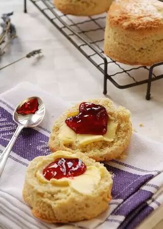 康饼(Scone),它的名字是由苏格兰皇室加冕的地方,一块有长久历史并被称为司康之石(Stone of Scone)或命运之石(Stone of Destiny)的石头而来的。司康饼可以做成甜的口味,也可以做成咸的口味,有些Scone里也有小葡萄干、芝士(Cheese)、枣子等。一般英国人吃司康的时候还是会抹上果酱和奶油,司康是英式下午茶里必不可少的一种东西,女王也每天都要吃的。