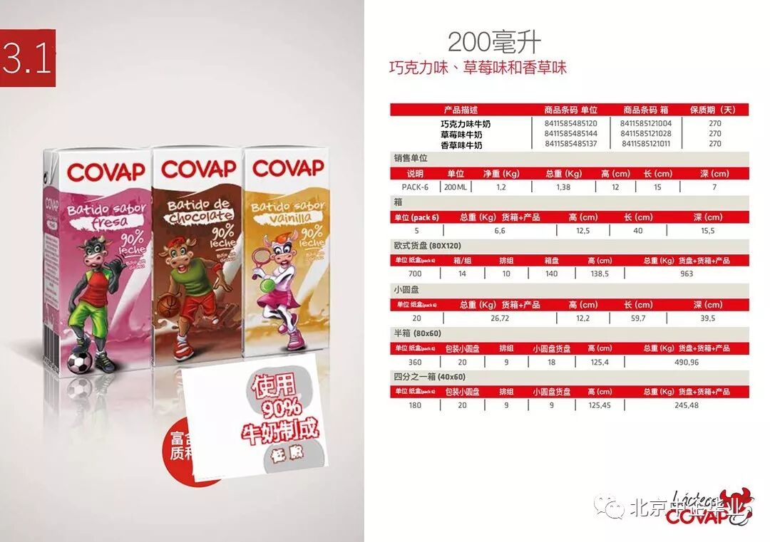 COVAP以生产200ml包装牛奶见长,其中我司现引进的有巧克力牛奶和香草味牛奶,部分脱脂牛奶含量高达90%,在保证醇香口感的基础上,最大程度地保障您和家人的健康,更是孩子成长的佳伴。