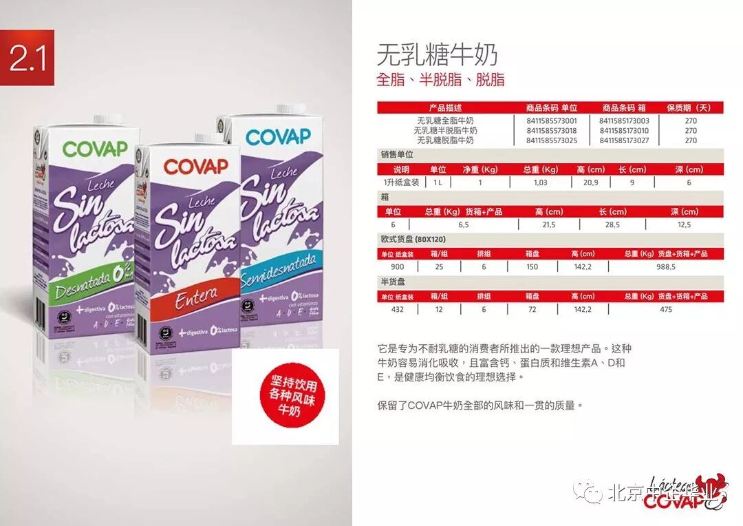 我司还引进了COVAP1L无乳糖型牛奶,钙含量高达110mg/100ml,是乳糖不耐受者更佳的选择!