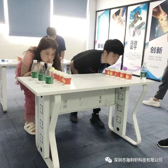 游戏欢乐进行中,矿泉水争夺战、吹乒乓球接力赛