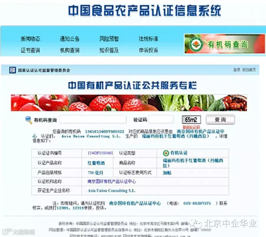 登陆“中国食品农产品认证信息系统”(food.caca.cn),输入产品有机码(刮开涂层)和验证码,即可获得查询结果。