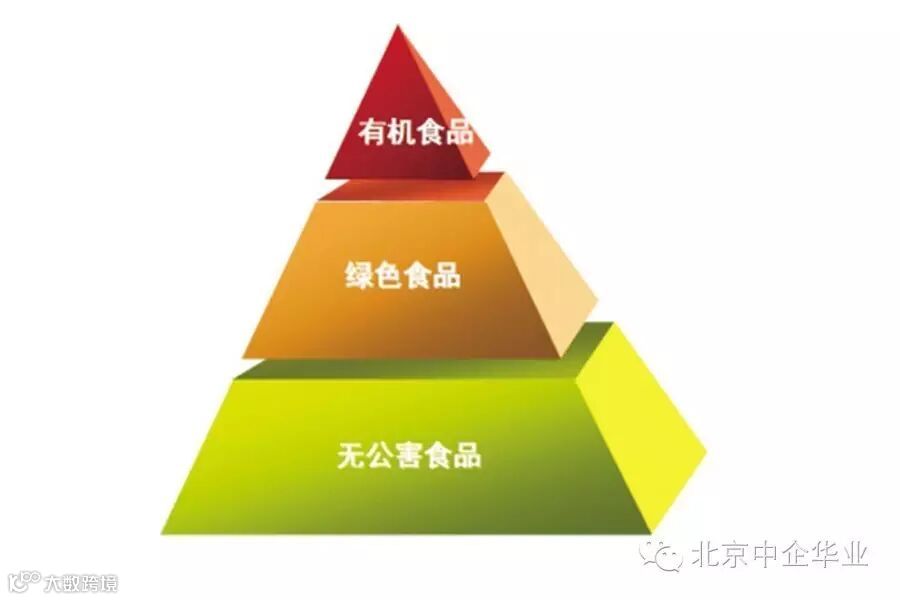 首先我们弄清楚几个概念。通俗地讲,有机食品是精品,绿色食品是良品,无公害食品是普及品,三者的关系可以形象地用金字塔来表现。