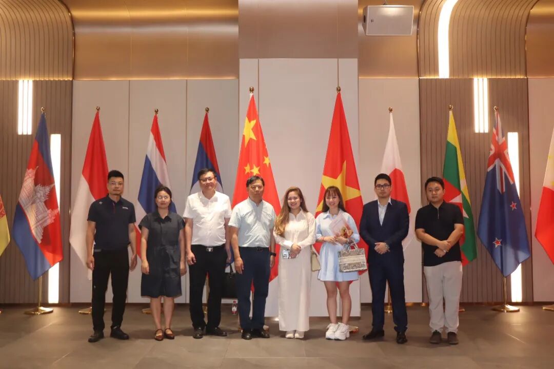 6月23日下午,Mia集团创始人兼董事长阮黄玉贤,Mia集团南区项目经理阮氏翠芳,Mia集团中国区代表、吴双资产创始人吴慕槐一行莅临RCEP国家馆,中农经贸招商经理王青兰热情接待来宾。此次考察旨在探讨双方在多领域的合作可能性,携手开拓更为广阔的市场空间。