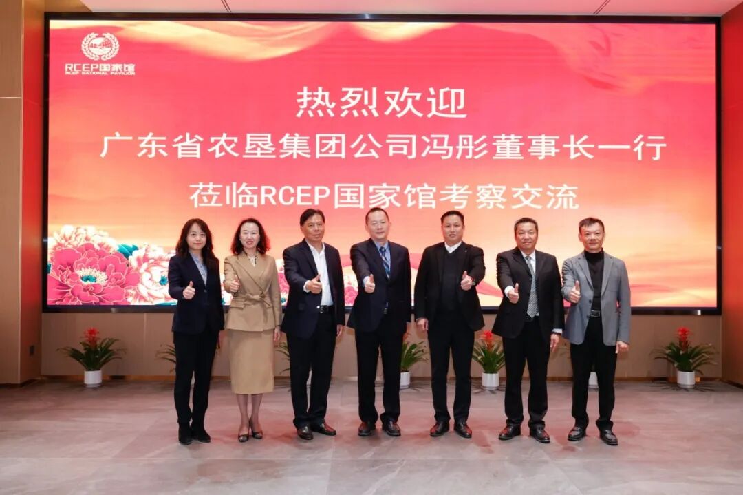2025年1月17日下午,广东省农垦集团公司(农垦总局)党委书记、董事长(局长)冯彤董事长率队莅临RCEP国家馆,进行实地考察与交流。广东省农垦集团公司(农垦总局)投资管理部部长吴树荣、深圳市米袋子菜篮子联合会秘书长方友川、深圳中农经贸供应链有限公司董事长郭晓民、集团总裁许静芬,深圳市米袋子菜篮子联合会优秀会员单位代表参加了活动。此次考察交流旨在深度挖掘双方在农业贸易、产业合作等领域的潜在契合点,为双方的业务拓展与深化合作筑牢基础。