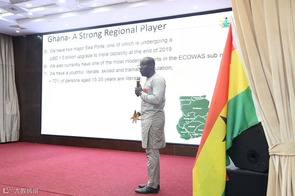 出席本次论坛的非洲加纳驻华使馆贸易官ALEX先生向出席论坛的嘉宾介绍了加纳的市场环境、国家激励政策与投资机遇。他强调,加纳国内市场充满活力,有组织和非组织的零售市场结构和渠道遍布全国,并在现有区域和双边贸易框架下,拥有通往各大海外市场的战略性市场准入机遇。