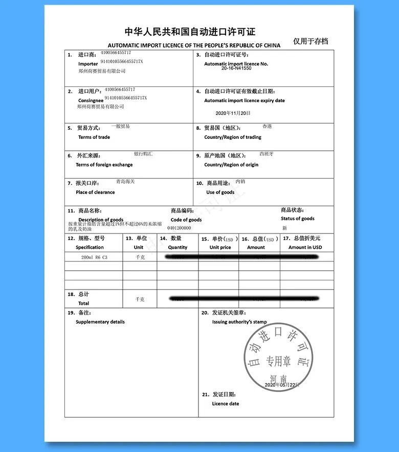 进口奶品的奶厂必须经过《中华人民共和国国家认证认可监督管理局》许可,经过4年左右的审查,才有资格在中国销售。从而进一步保证了奶品质量。