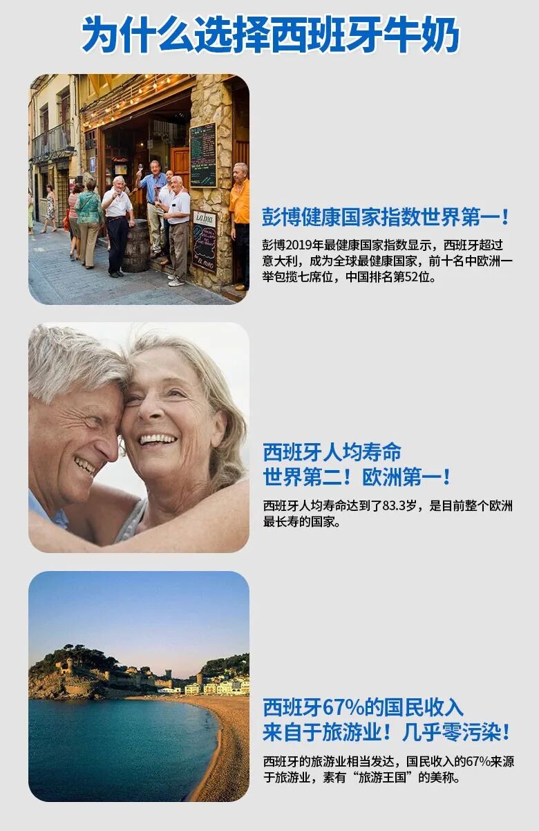 彭博2019年最健康国家指数显示,西班牙成为全球最健康的国家;西班牙人均寿命达到83.3,是目前欧洲最长寿的国家;西班牙67%的国民收入来自旅游业,几乎零污染。