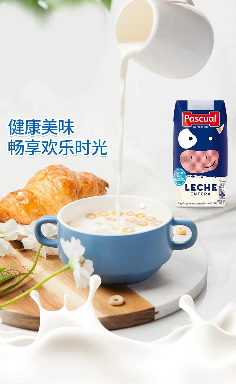 Pascual全脂牛奶是保质期6个月的牛奶,完美的避免酪蛋白发生沉淀和氨基酸发生麦拉德反应的问题,Pascual全脂牛奶做到无添加,保留了牛奶最原始的香醇,一口Pascual全脂牛奶,臻享西班牙牧场原生态奶香。