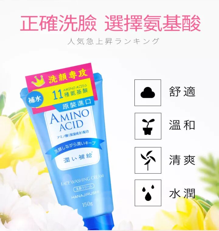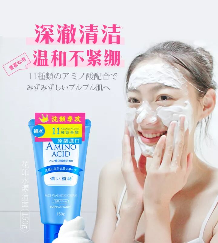 :花印水漾洁净洗面乳150g,洁面同时会补充肌肤水分,使肌肤干净通透,不紧绷。享受清爽、莹透的洁面体验!温和清洁,肌肤干净通透!清洗的同时不会带走肌肤内在的水分,使洁面后不会产生紧绷感。让肌肤吸足水分,带来清新水润的舒爽享受。