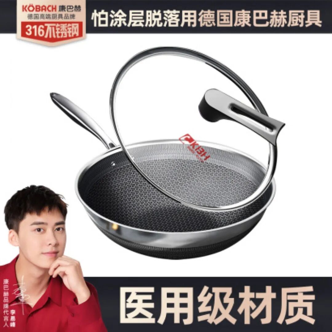 康巴赫316L不锈钢双面蜂纹不粘炒锅 旗舰经典红 明火电磁炉通用32cm