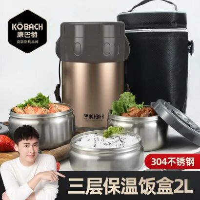 康巴赫KBH-YTS-2000-304不锈钢三层保温饭盒2L