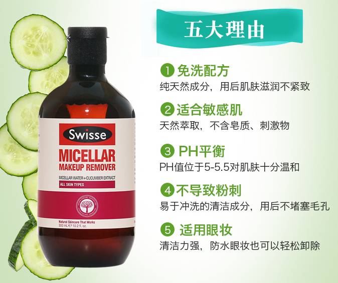 敏感肌就选温泉水萃取黄瓜和草本精华swisse小黄瓜卸妆水吧~