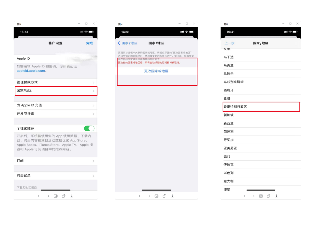 附上图文步骤:设置-点击Apple账户-选择“媒体与购买项目”-选择“查看账户”-选择“国家地区”-选择“更改国家或地区”-下拉找到“香港特别行政区”-点击“同意”-完成“资料填写,付款方式必须填写”-完成设置