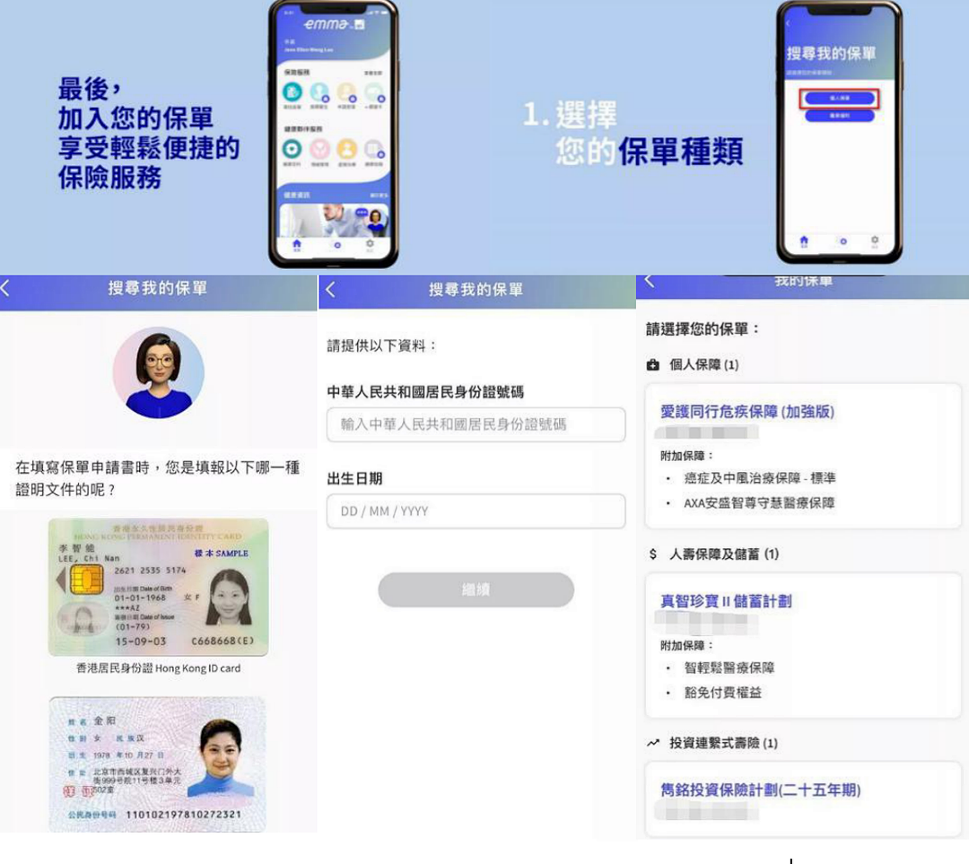 注册登入后记得加入您的人寿保单到【Emma by AXA】,享受轻松便捷的保险服务![ 只可以加入完成登记手续并已生效的保单。]