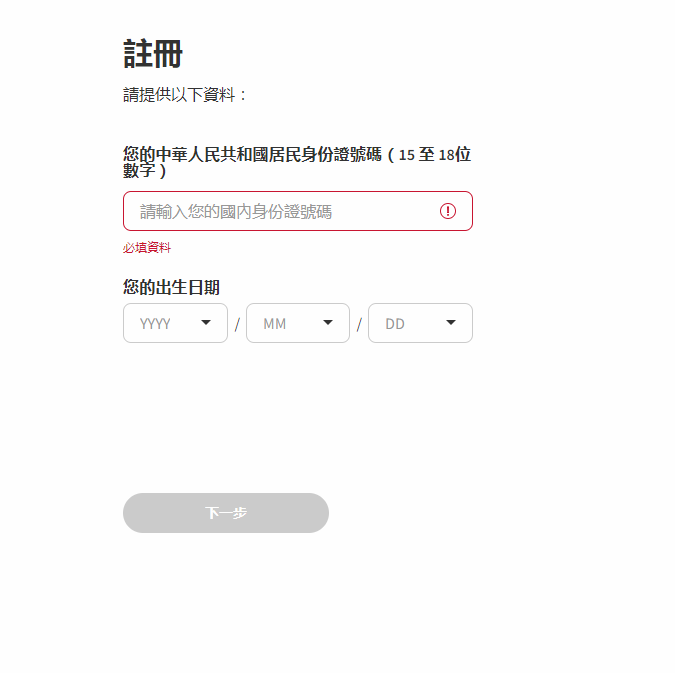 输入您投保时登记的身份证件号码(香港/ 中国/ 澳门)及出生日期,如果您持有多份人寿保单,只需加入任何一份,其他的亦即会自动显示。