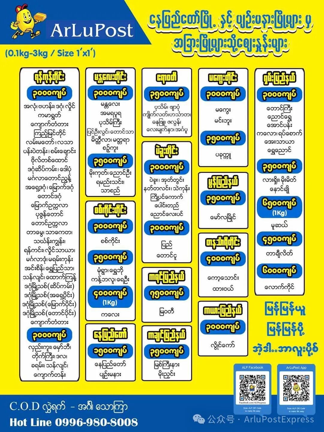 🌟同城 3公斤内只需要缅币 1,500Ks 送货到家