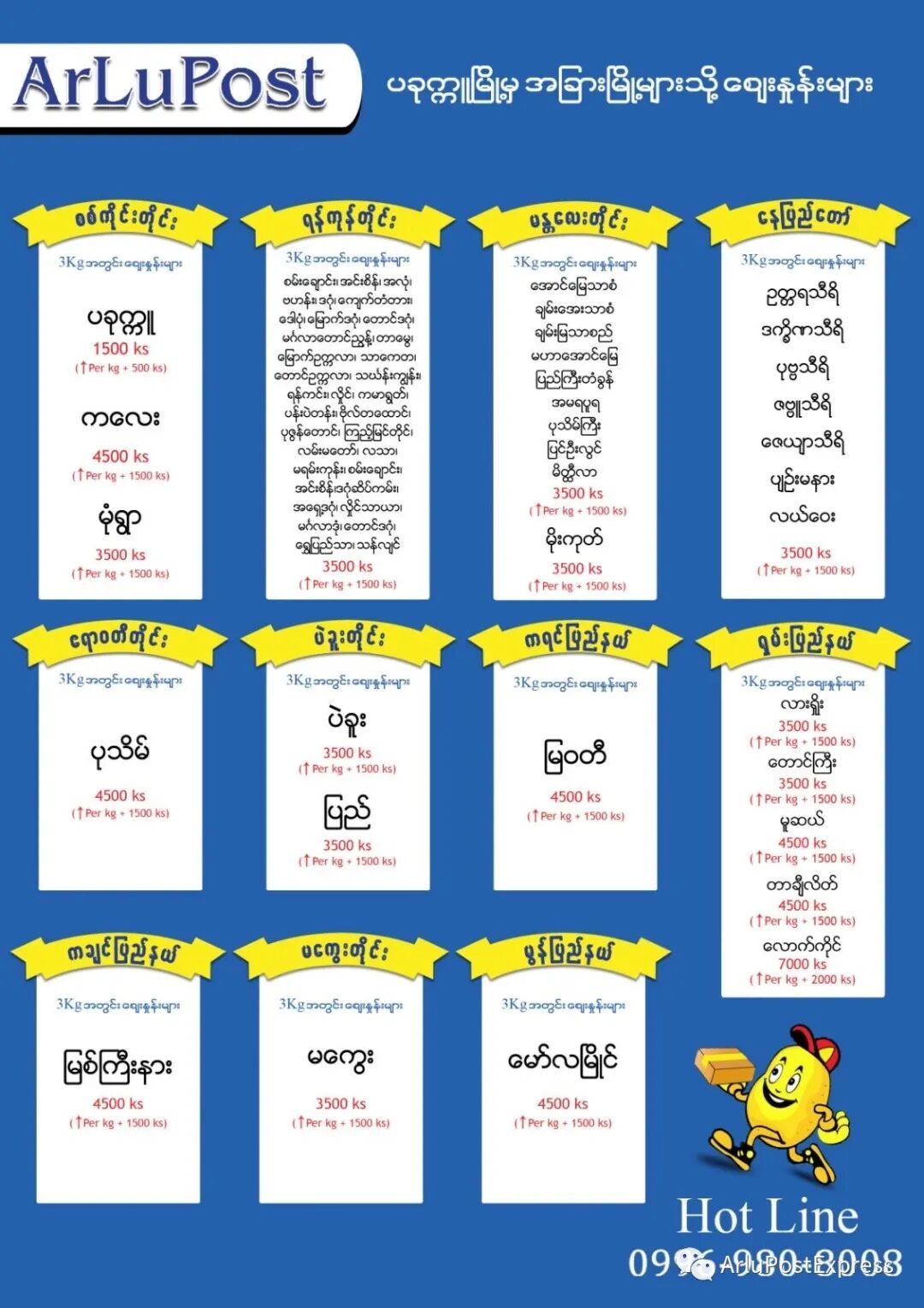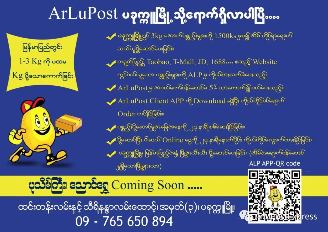 🌟同城 3公斤内只需要缅币 1,500K 送货到家 。