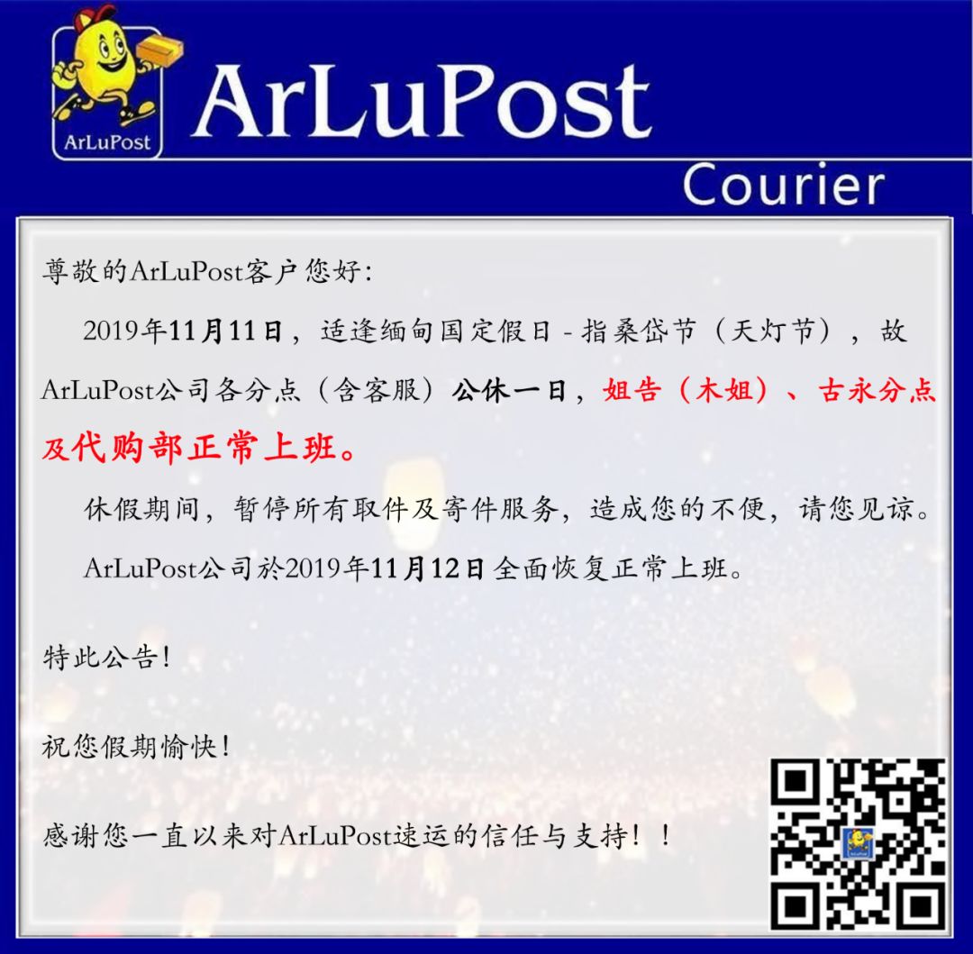 【11.11 直桑岱节】ArLuPost服务调整通知,代购部正常上班