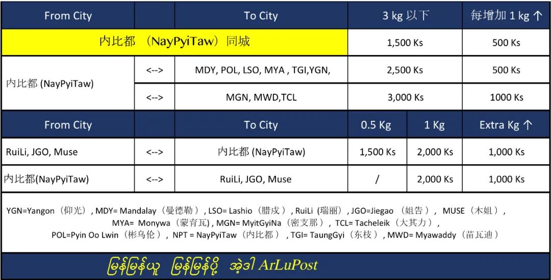 ArLuPost Courier မှပိုမိုကောင်းမွန်သည့်ဝန်ဆောင်မှုပေးနိုင်ရန်2021.6.20ရက်နေ့မှစ၍ နေပြည်တော်Naypyitaw ရုံးခွဲများကိုဖွင့်လှစ်လိုက်ကြောင်း အထူးသတင်းကောင်းပါးလိုက်ပါသည်။