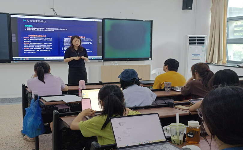 下午,杨芬老师围绕“人才匹配与职业发展”展开深度分享。她以企业招聘体系为切入点,提出“成功招聘=岗位画像精准度×简历匹配度×渠道有效性”的核心公式,系统讲解岗位需求解构、简历关键词优化及招聘渠道选择策略。在简历筛选环节,通过展示真实HR后台数据,揭示“3秒法则”年龄/专业/经验等硬件条件优先与“项目量化原则”用具体数据支撑能力描述的实操逻辑,引导学员建立“结果导向”的简历撰写思维。课程特别设置的模拟面试环节成为实践教学的亮点。杨芬老师选取“外贸业务员”“跨境电商运营”等典型岗位,设计压力型面试场景,指导学员运用“STAR法则”情境-任务-行动-结果进行结构化应答。通过现场复盘与专业点评,学员深刻理解问题拆解能力、逻辑表达能力与抗压应变能力在面试中的关键作用。