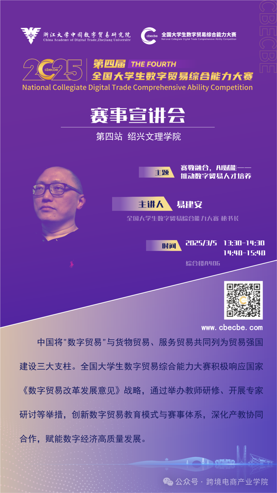 2025年3月5日下午,在南山校区6-A406教室,学院召开了第四届全国大学生数字贸易综合能力大赛宣讲会,经济系国际经济与贸易专业和国际商务专业23、24级全体学生分两场参加了此次会议,会议由董德民老师主持,全国大学生数字贸易综合能力大赛秘书长易建安进行了宣讲,经济系江爱情、刘俞希老师参加了此次会议。
