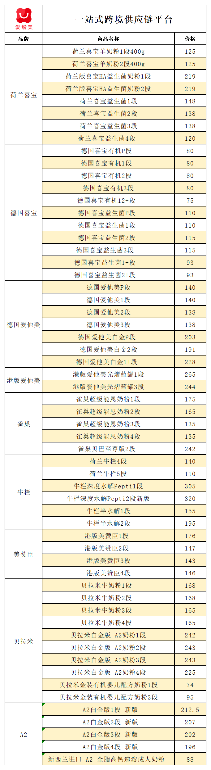 婴儿奶粉 | 1月29日汇总表