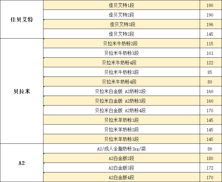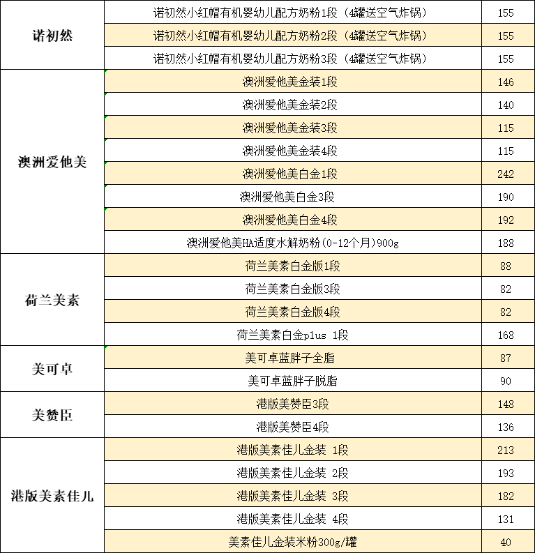【婴儿奶粉】8月15日汇总表
